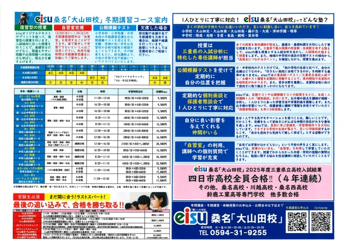 ※詳細に関しては、eisu大山田校 0594-31-9255までお問合せください。