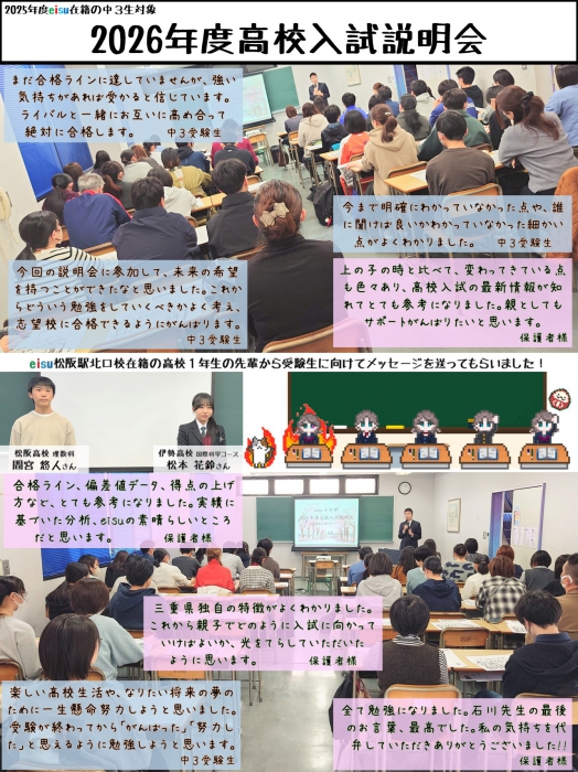◆三重中学校(STANDARD) 28名合格!!(定員のおよそ2人に1人が松阪駅前校生です!)松阪駅