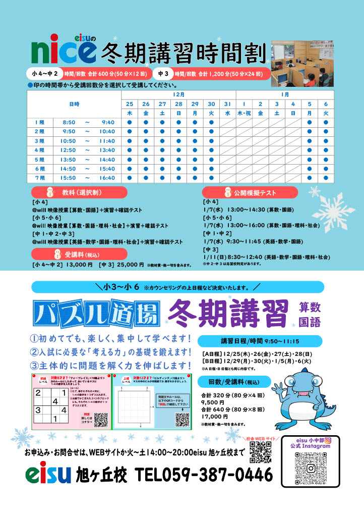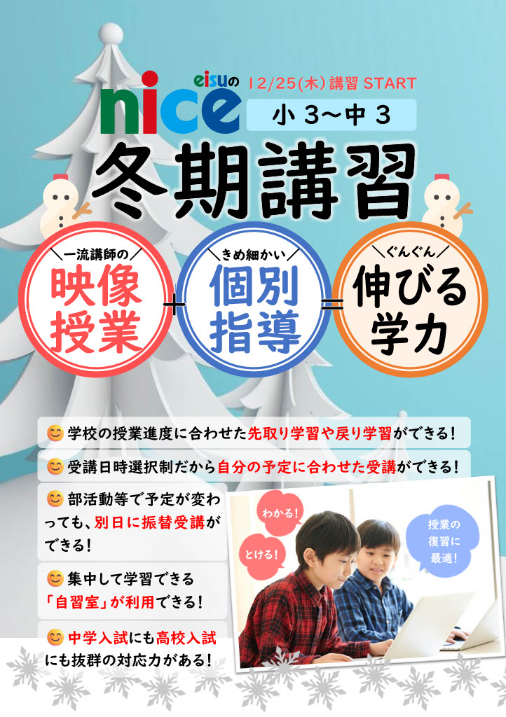 *冬期講習は例年満席になります。お早めにお申し込みをご検討ください。