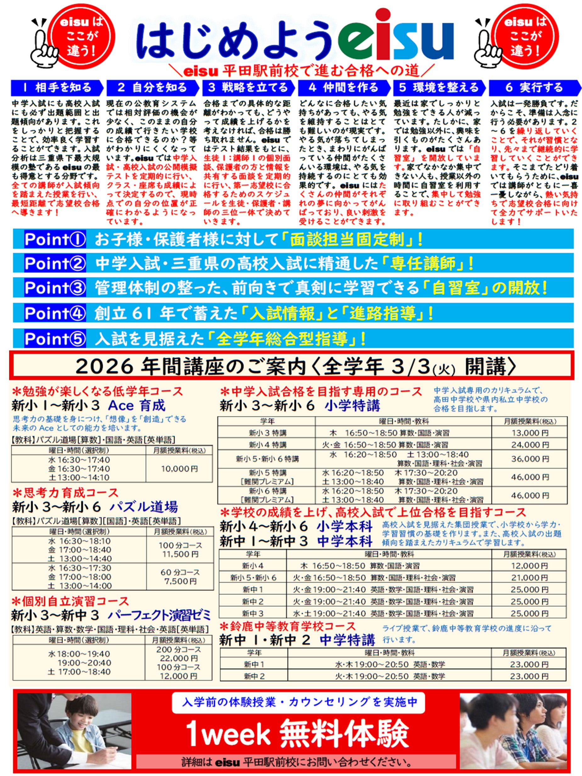 ※「小学特講コース」「小学本科コース」「中学本科コース」は【春期講習】を受講いただくことで、前学年の内容のリカバリーをすることができます。