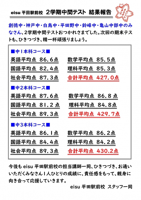 eisu生のみなさん、2学期も中間テストお疲れさまでした。夏休みも終わり9~10月は、学習ペースも落ちやすい時期ですが、本当によく頑張ってくれました!お疲れさまでした。