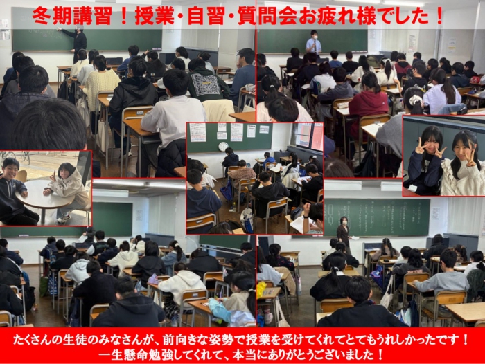 冬期講習、多くの方にご参加いただきまして、ありがとうございました。一生懸命前向きに頑張ってくれたeisu生、冬期講習生のみなさまのおかげでとてもよい冬期講習になりました。担当講師一同感じております。本当にありがとうございました。