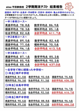 eisu平田駅前校のみなさん、みんなの成長がとてもうれしかったです。お疲れさまでした。