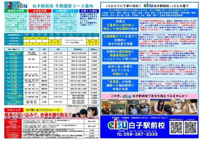 詳細に関しては、eisu白子駅前校までお問い合わせください。