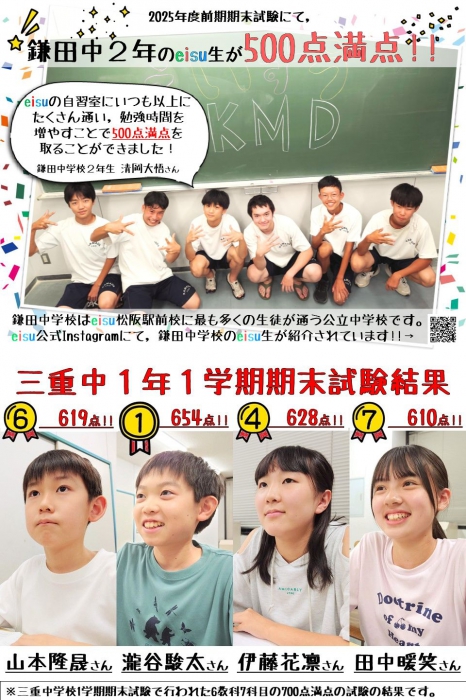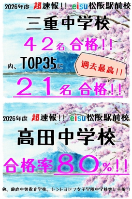 ◆三重中学校(STANDARD) 28名合格!!(定員のおよそ2人に1人が松阪駅前校生です!)松阪駅