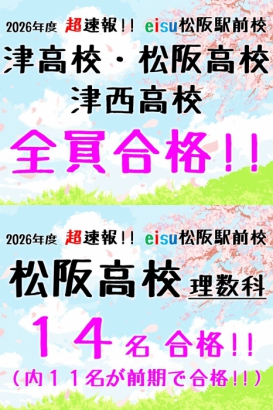 ◆津高校 全員合格!!◆松阪高校 全員合格!!