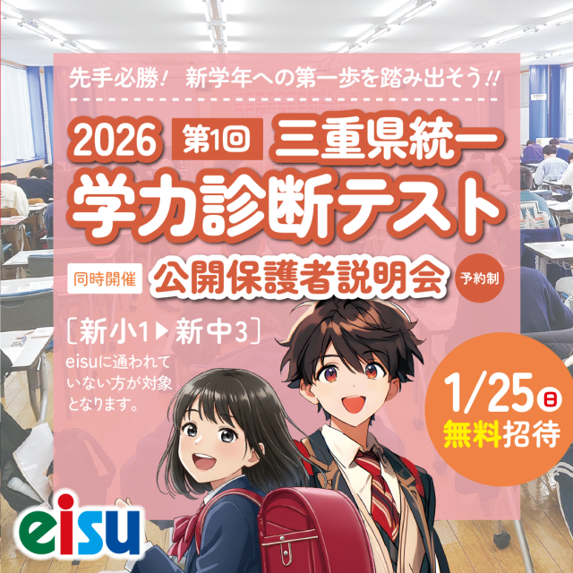 【三重】1/25(日) 2026第1回 eisu三重県統一学力診断テスト・公開保護者説明会のお知らせ(無料)