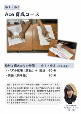 さらに、小学本科では、問題解決能力や思考力の育成に効果的な「パズル道場」を、小・中学本科では、今後の様々な入試で評価の対象となるであろう“英語4技能”の習得に「セイン英語ジム」も授業に取り入れています。