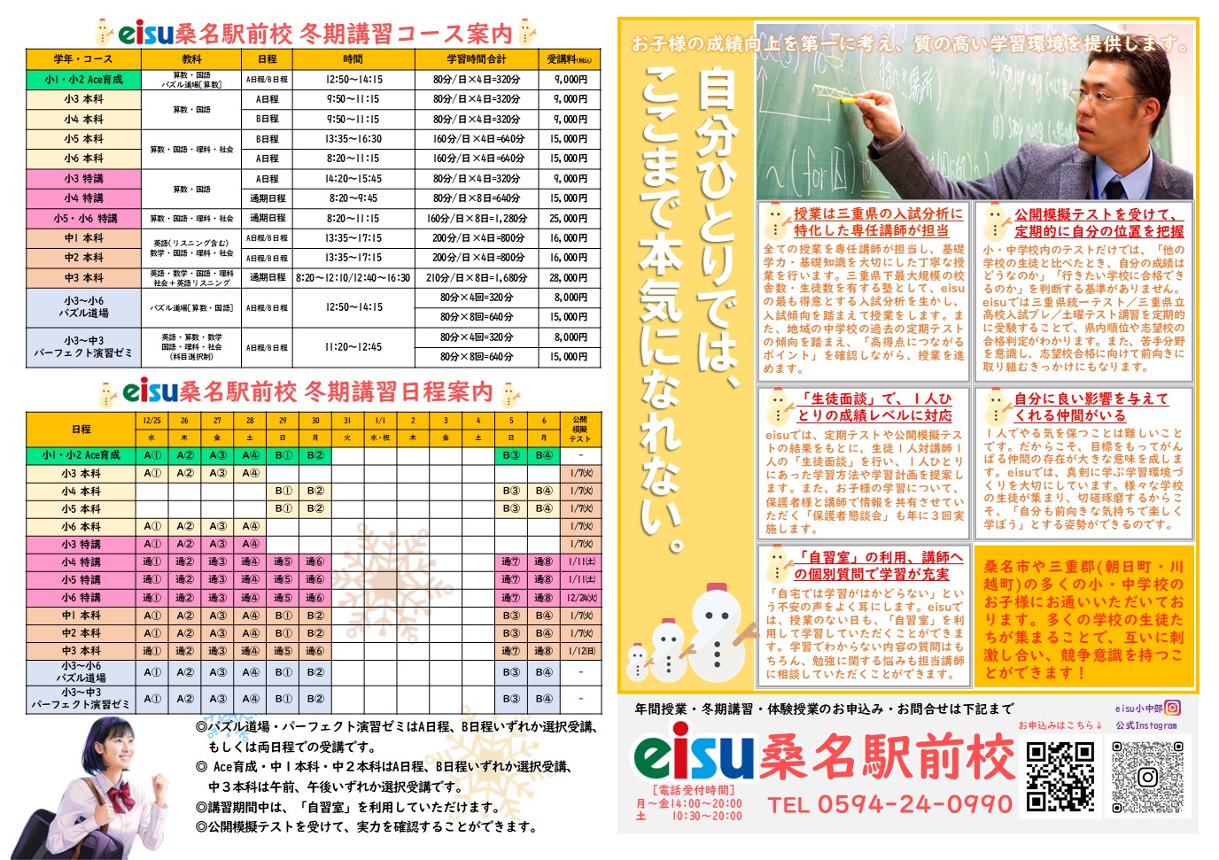 eisu桑名駅前校冬期講習のチラシです。