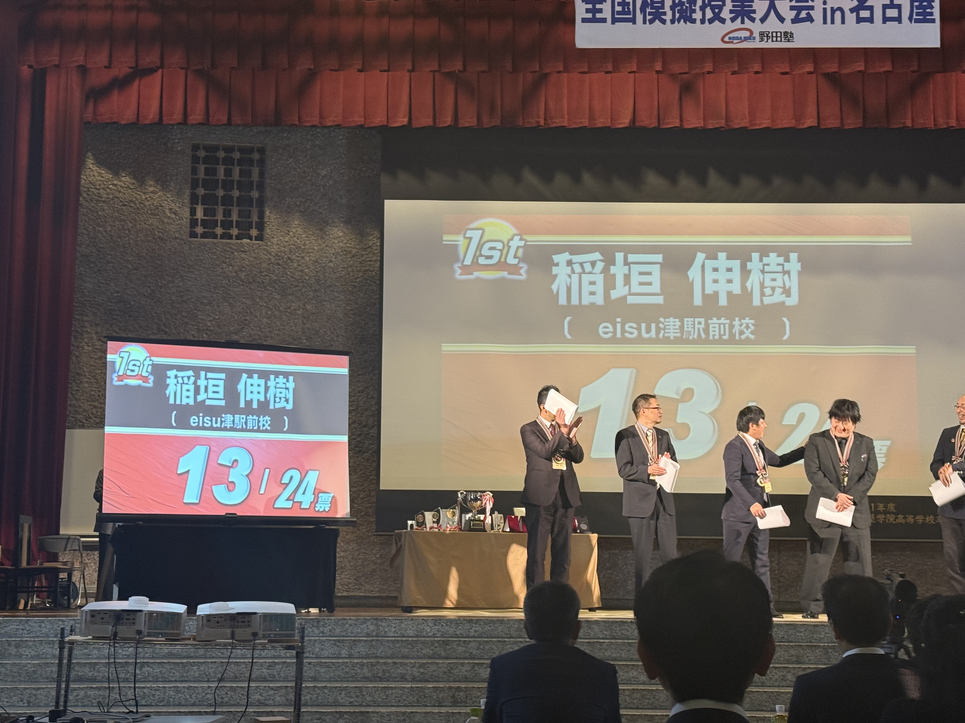 また、その後行われた、各科目のチャンピオンによるグランドチャンピオンを決める戦いには、国語科チャンピオンとして石井、理科科チャンピオンとして稲垣の2名が出場し、2名とも堂々たる授業を披露した結果、稲垣がグランドチャンピオン(日本一)に輝きました。