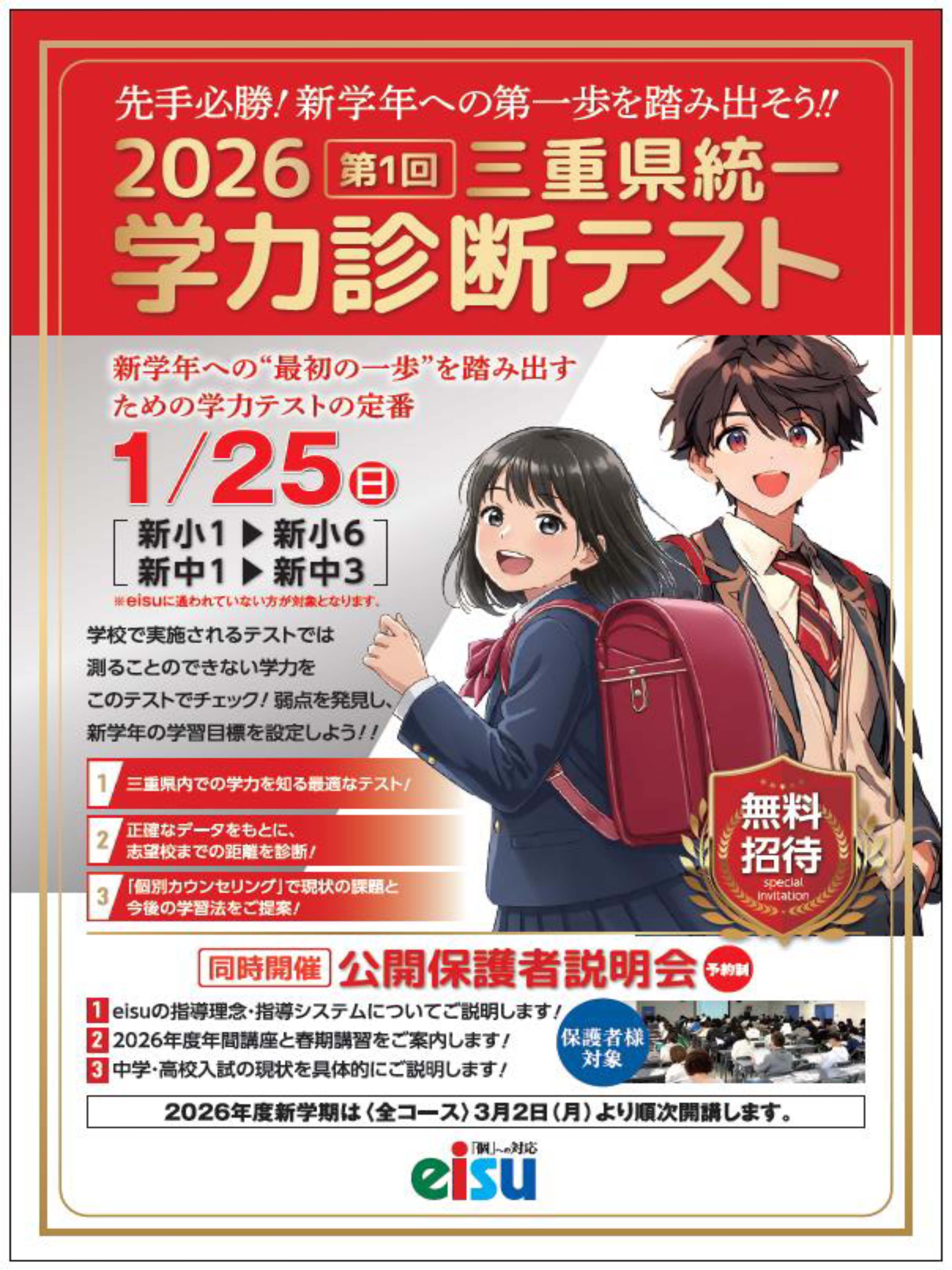 eisuに通われていない小学3・4・5・6年生/中学1・2・3年生を対象