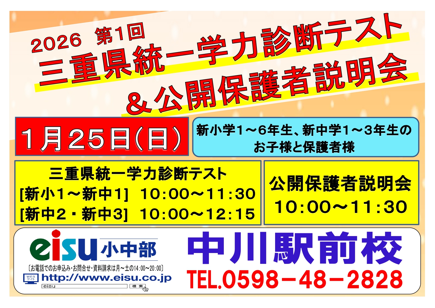 2026年度 公開保護者説明会 学力診断テスト 開催のお知らせ