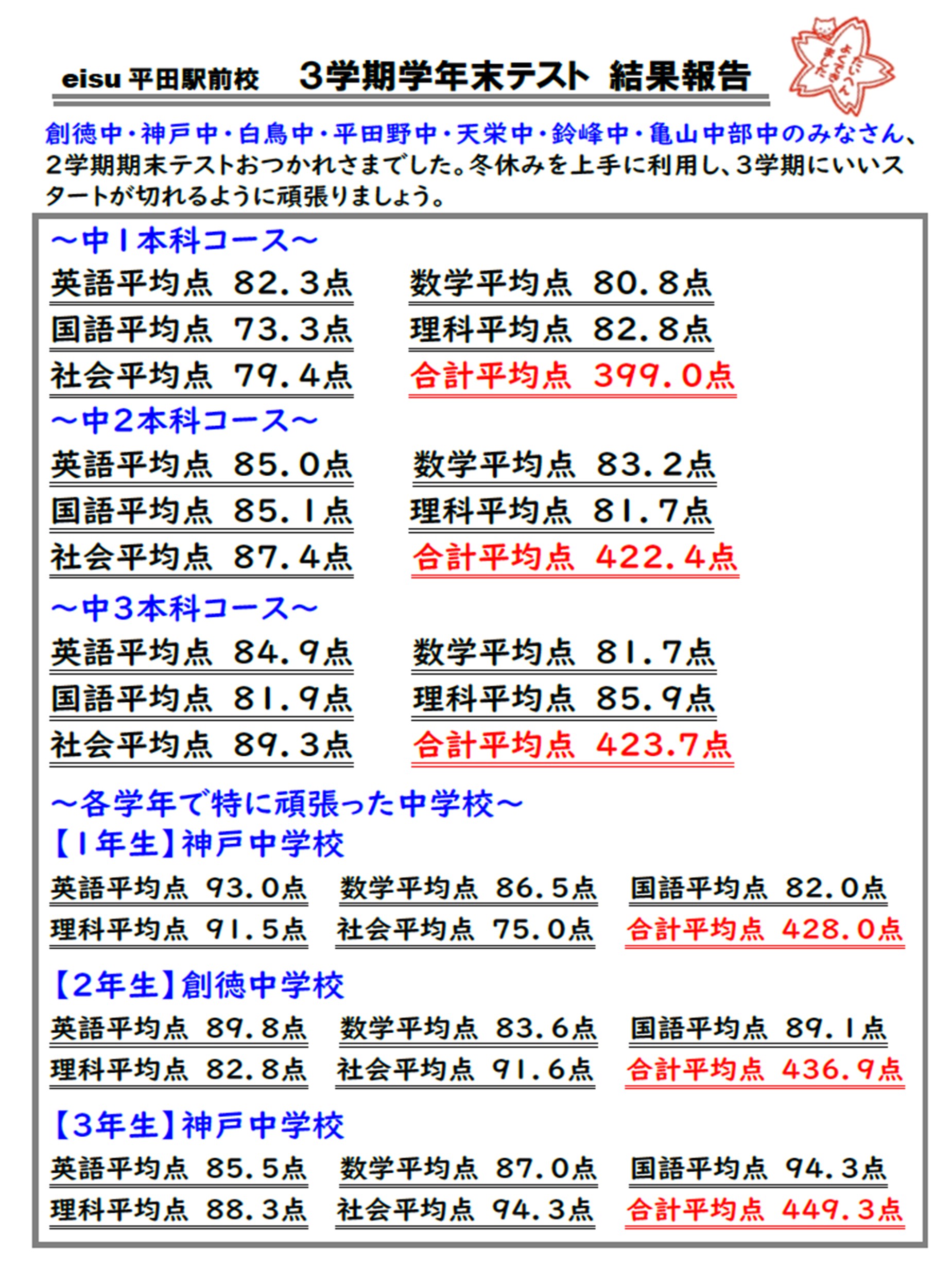 【学年末テスト結果報告】