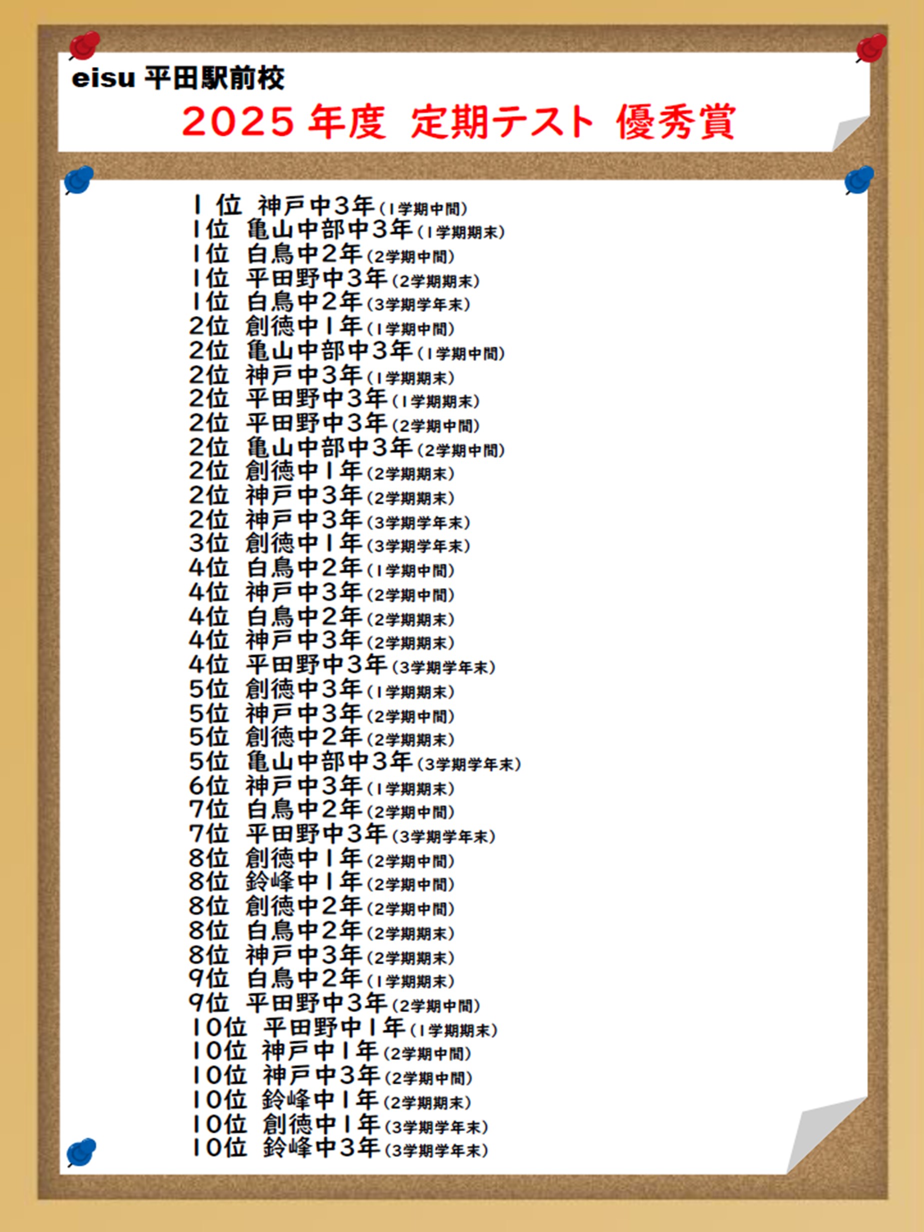 2学期期末テストおつかれさまでした。